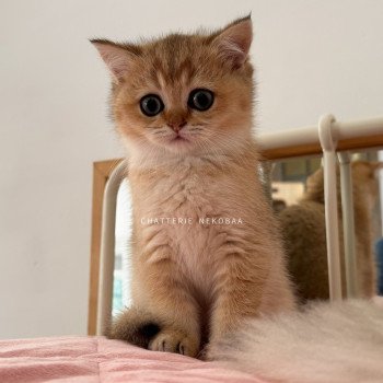 Comme tous nos chats British black golden, Fuyuko aura les yeux verts et ses yeux seront grands. Cette mini puce est très rigolote, ce sera une calme et à la fois, une joueuse invétérée. Parfaite pour une vie en intérieur. Elle pourra partir mi novembre de la maison.
