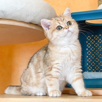 Casca est une magnifique petite Scottish golden, plus précisément une Scottish Straight black golden tortie blotched tabby. Fille de Fumiko et Isobu, elle est ma merveille née à la maison en 2021. J'ai très vite vu qu'elle allait me plaire, tant sur le type, que la couleur, que son caractère exceptionnel.